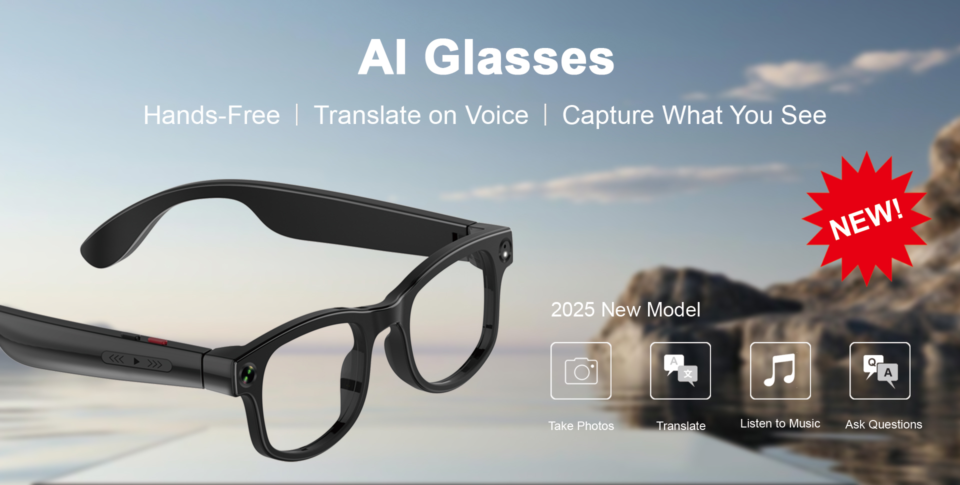 AI Glasses 2025: All-scenario smart companion with 98% accurate translation, 42g lightweight design & 8MP camera. Ideal for cross-border communication!